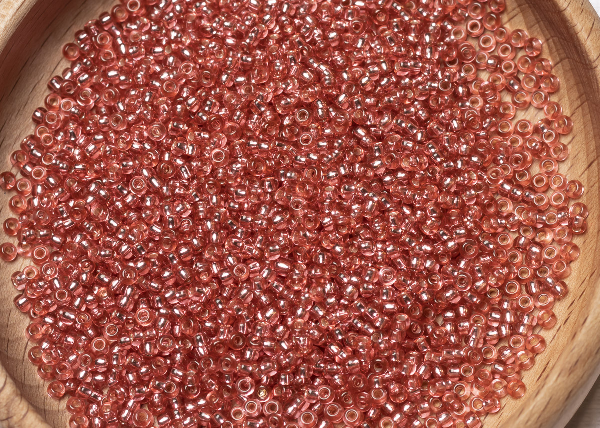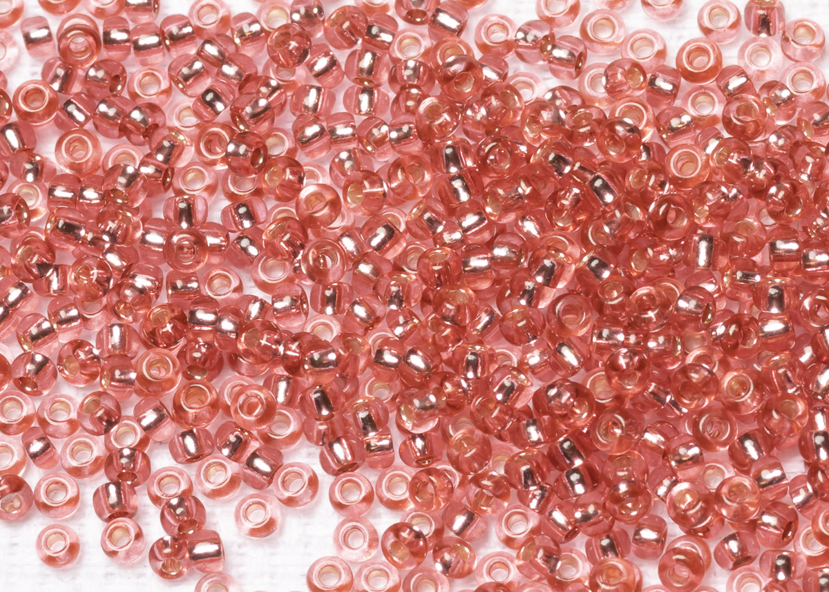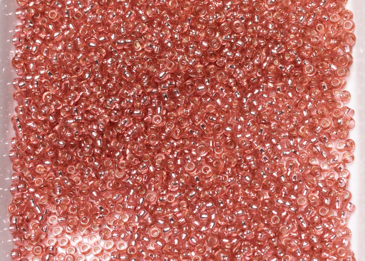 Бисер Чехия круглый 10/0 50г 07722 гранатовый розовый с серебряным прокрасом