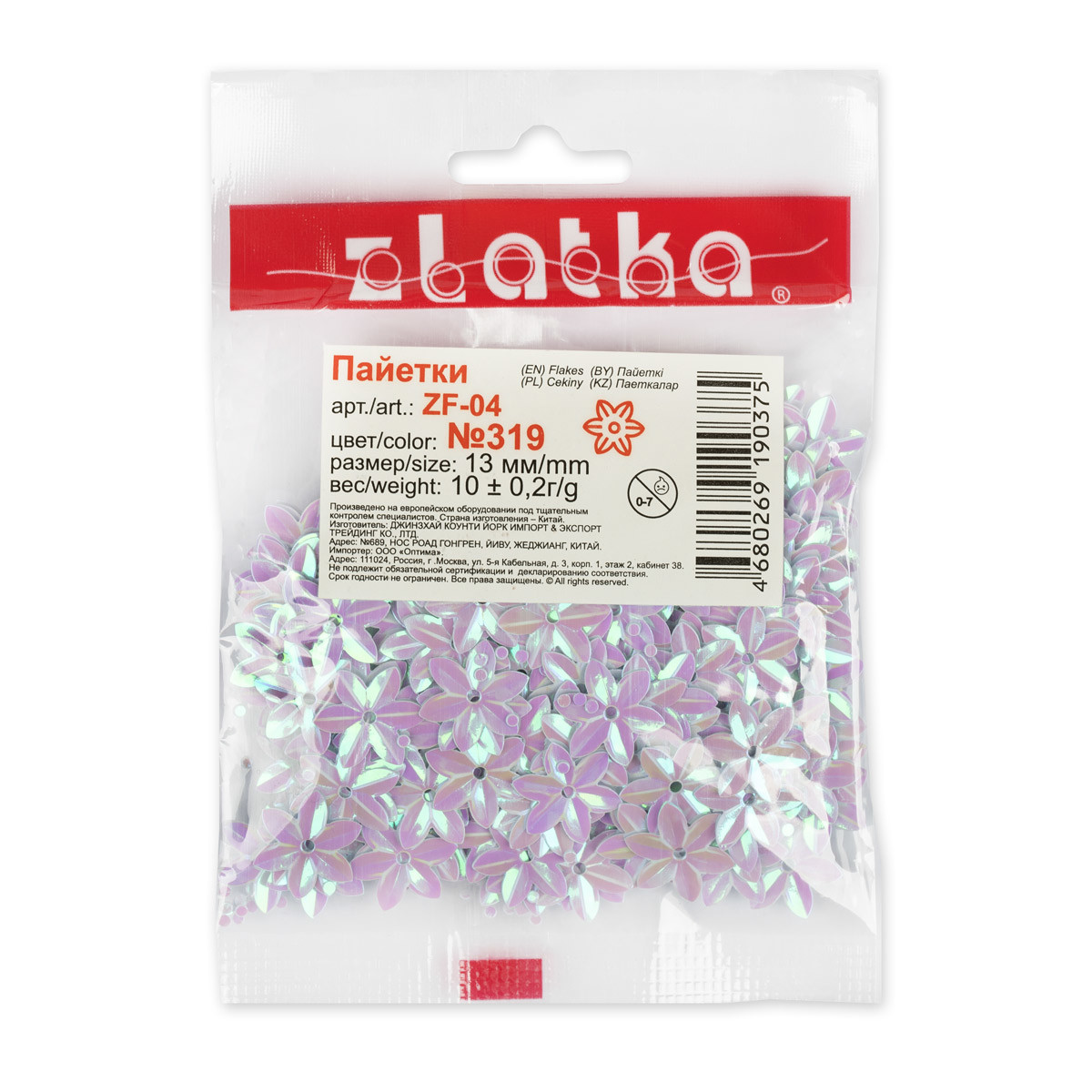 Пайетки " Zlatka" россыпью ZF- 04 13 мм 13 мм 10 г №319 белый