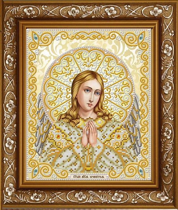 Рисунок на ткани для вышивки бисером ЖС-4007 Ангель Хранитель в жемчуге 21х25см